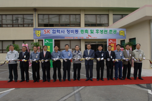 SK㈜는 울산공장은 14일 오전 신헌철 사장을 비롯한 관련 임직원과 협력사 대표 및 임직원 등이 참석한 가운데 ‘협력사 정비동 증축 및 후생관 준공식’을 개최했다.