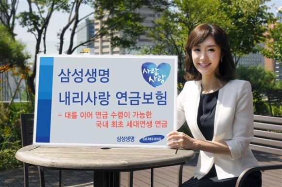 삼성생명은 19일 국내 최초 세대연생 종신연금인 ‘삼성생명 내리사랑 연금보험(무배당)’을 판매한다고 밝혔다. 이번 상품은 한건의 연금으로 (조)부모의 노후자금과 (손)자녀의 필요자금을 동시에 준비할 수 있는 상품이다.