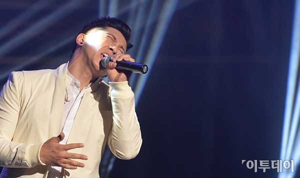 남성 R&B 듀오 ‘플라이투더스카이’ 정규 9집 앨범 ‘컨티뉴엄(CONTINUUM)’ 발매 기념 컴백 쇼케이스가 20일 오후 서울 송파구 방이동 올림픽공원 K아트홀에서 열렸다. 이날 플라이투더스카이의 멤버 브라이언이 열창을 하고 있다. 최유진 기자 strongman55@