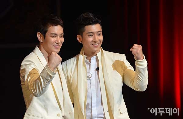 남성 R&B 듀오 ‘플라이투더스카이’가 20일 오후 서울 송파구 방이동 올림픽공원 K아트홀에서 열린 정규 9집 앨범 ‘컨티뉴엄(CONTINUUM)’ 발매 기념 컴백 쇼케이스에 참석해 포토타임을 갖고 있다. 최유진 기자 strongman55@