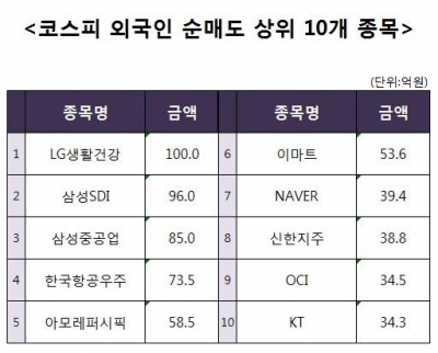 [코스피 외국인 순매도 상위 10개 종목]
