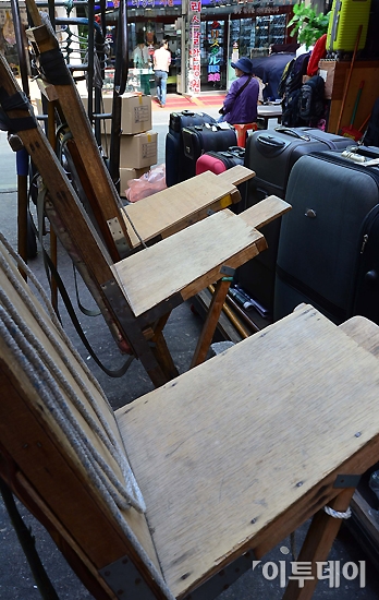 세월호 참사의 여파로 경제 상황에 대한 소비자들의 심리를 보여주는 소비자심리지수가 8개월만에 최저 수준으로 급락했다. 한국은행이 27일 발표한 5월 소비자 동향조사 결과에 따르면 이번달 소비자심리지수는 105로 전월보다 3포인트 하락했다. 27일 오전 서울 남대문시장 골목에 비어있는 나무지게의 모습이 요즘 경제 상황을 보여주는 듯하다. 노진환 기자 myfixer@