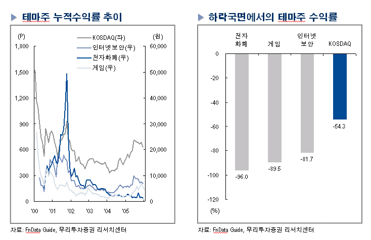 이윤학 연구원은 "테마주의 경우 상승사이클이 평균 1년(6개월~2년)가량 상승사이클 이후 80~90%까지 하락한 반면 펀더멘털과 실적을 갖춘 우량주는 시장대비 월등한 수익률을 기록하고 있다"고 강조했다.
