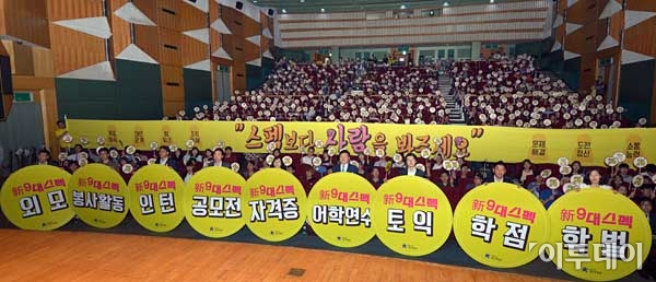 대통령직속 청년위원회가 주최한 '스펙초월 채용 설명회'가 28일 오후 서울 건국대에서 열렸다. 이날 수도권지역 대학생과 취업준비생을 비롯한 현대차,SK,포스코,네이버,두산,산업은행,한국남동발전 인사채용담당자들이 스펙초월 채용문화 확산을 위한 합동퍼포먼스를 펼치고 있다. 최유진 기자 strongman55@