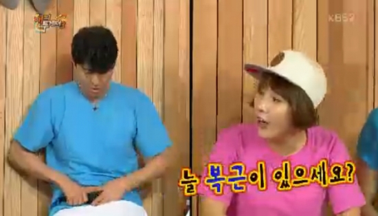 그러나 박미선, 신봉선 등 ‘해피투게더’ 여자 MC들의 짓궂은 개인 지도 요청에는 버럭하는 모습을 보여 웃음을 유발했다.
