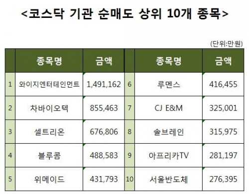 [코스닥 기관 순매도 상위 10개 종목]