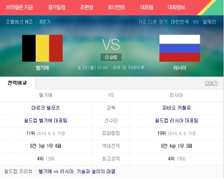 오는 23일 오전 1시(한국시각) 열리는 러시아 벨기에전 승자에 대한 예측이 나와 많은 관심을 끌고 있다. 영국 언론의 한 패널이 벨기에와 러시아전을 앞두고 벨기에의 완승을 예상한 것.