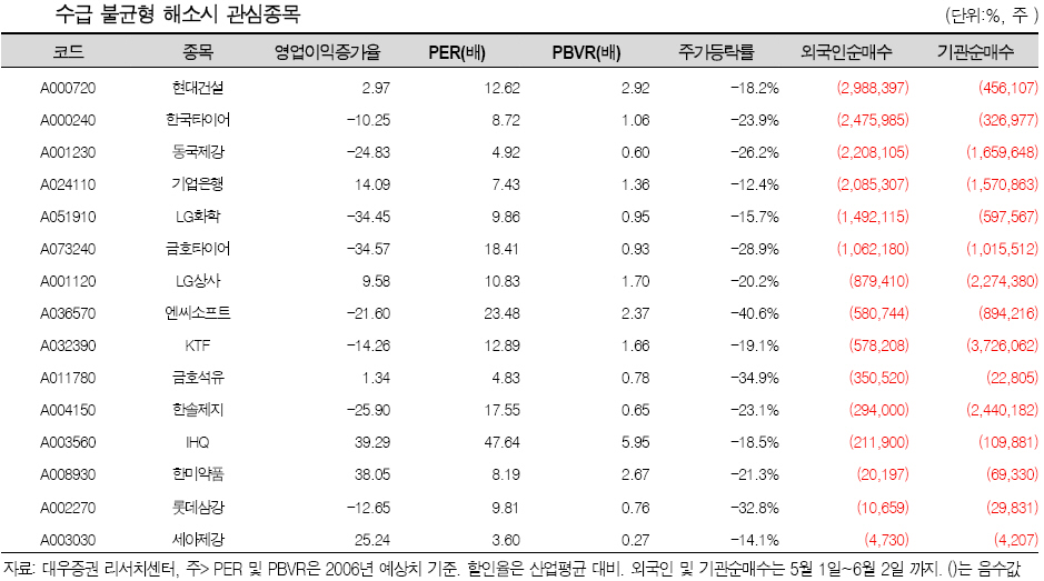 김 연구원은 "외국인의 지속적인 매도세라는 환경속에서도 외국인 매도 물량이 나온 종목들은 기관의 매수세가 반드시 유입됐다는 점"이라며 "주요 투자주체들의 매물은 반드시 소화처가 필요하며 물량을 받아내는 수요가 존재함으로 인해 주가가 안정적인 흐름을 보였다"고 말했다.