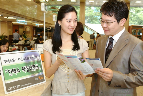 국민은행은 주가지수(코스피200지수)의 움직임과 동일한 수준의 성과가 발생하도록 설계되고 운용되는 인덱스 적립식펀드 4종을 25일부터 판매한다.