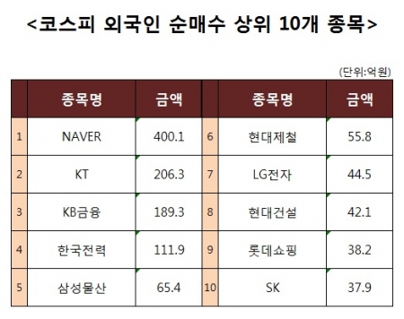 [코스피 외국인 순매수 상위 10개 종목]
