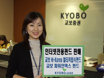 교보증권은 오는 29일부터 인터넷으로 가입할 수 있는 인터넷 전용펀드 '교보 Hi-Korea 멀티적립식펀드-e’ 와 ‘교보 파워인덱스펀드 -e’를 판매한다고 밝혔다.