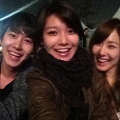 걸그룹 소녀시대 멤버 수영, 티파니와 슈퍼주니어 멤버 규현이 SM 콘서트 인증샷을 공개했다.