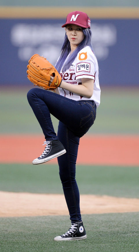 박예린은 19일 서울 목동구장에서 열린 2014시즌 한국아쿠르트 세븐 프로야구 넥센 히어로즈와 LG 트윈스의 경기에 앞서 시구를 위해 마운드에 올랐다.