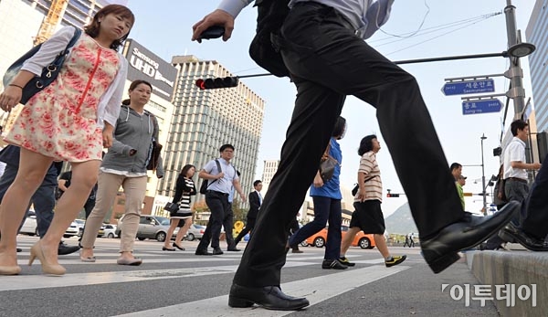 대체휴일로 길었던 추석연휴가 끝난 11일 오전 서울 광화문 네거리에서 시민들이 출근길을 서두르고 있다. strongman55@