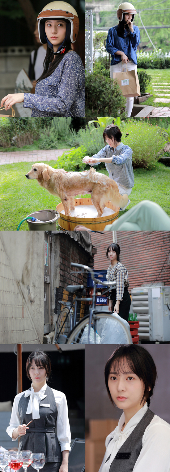 사진 속 크리스탈은 배달을 하는 모습, 개 목욕시키기, 식당 알바, 호텔 종업원 등 다양한 아르바이트를 통해 홀로 살아가는 억척 ‘짠순이’의 모습을 보여주고 있다.