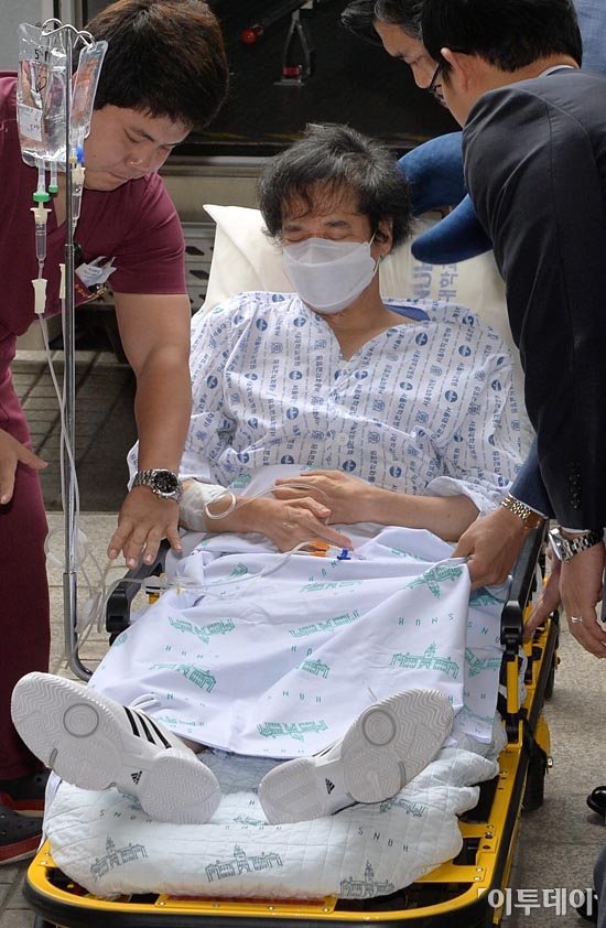 [포토]구급차에서 내리는 '이재현 CJ그룹 회장'