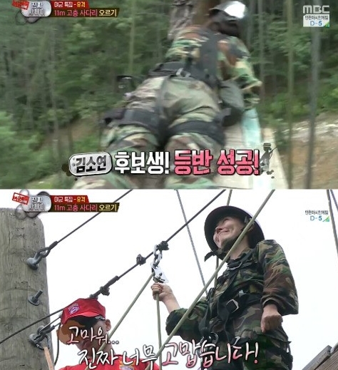 14일 방송된 MBC 예능프로그램 ‘일밤-진짜사나이’에서는 여군들의 유격 훈련기가 전파를 탔다. 이날 여군 후보생들은 11m 고층 사다리 오르기에 나섰다. 체력이 약한 김소연은 초반부터 훈련을 버거워했다.
