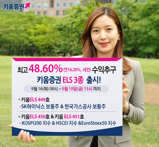 키움증권은 오는 19일 주가연계증권(ELS) 3종을 공모한다고 18일 밝혔다.