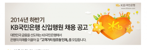 국민은행은 입사 지원시 학력·성별·연령에 제한을 두지 않는 등 열린채용을 실시했다. 입사지원서, 필기·면접전형 전반에 걸쳐 다양한 지식과 풍부한 사고력이 필요한 과제를 제시할 예정이다.